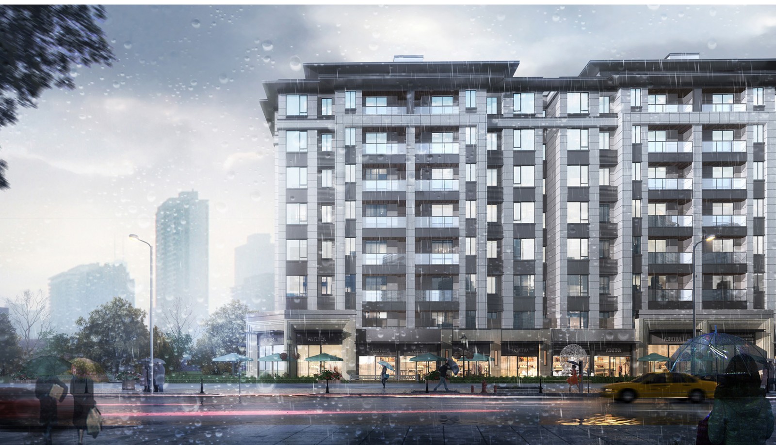 重庆融创九棠府在建筑风格上萃取现代东方技艺精华,屋檐采用重檐做法,将永恒的东方旋律淋漓尽致的表达;项目将细部设计放在极为重要的地位,设计方案对其予以充分重视,多层住宅、高层住宅均考虑大气、庄重的法式,并充分考虑形体、材质等相互协调以增强第一印象和品质感。高度重视外立面设计,品质感强,造型简洁,色调协调,又不失细节,形成较好的视觉感受。立面造型结合新东方的元素,在顶部设置装饰构件,底部和入口等部位采用铝板等材质,通过阳台、窗的变化在较大尺度上体现现代简洁元素。以高级灰色调为主,突出建筑挺拔的形态。